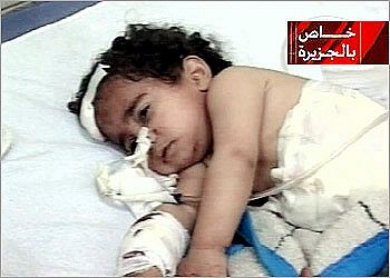 Ergebnisse der 'Operation Freiheit für den Irak' Aus der Seite www.aljazeerah.info/News%20Photos/Photos%20of%20Iraq%20war%20victims.htm Diese Seite ist seit dem 09.04.03 aus unerfindlichen Gründen (?) nicht mehr erreichbar. Beim Aufruf der Seite kommt die Meldung: "Unable to fetch Domain". Offensichtlich stören Kriegsbilder bei der Propaganda!
