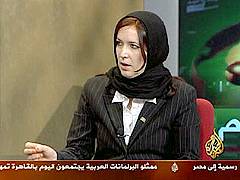 Hierbei hatte sie vergleichsweise leger ein Kopftuch angezogen und wirkte einigermaßen souverän, insbesondere Gestik wurde in adäquat wirkender Weise eingesetzt. Der zugehörige Interviewtext wurde jedoch auffälligerweise nicht verläßlich überliefert. Eine vollständige Fassung des angeblich auf Englisch geführten (warum dieses, wo sie doch fließend Arabisch sprach) Interviews liegt uns nicht vor. Jedoch setzte umgehend eine massive Kampagne gegen sie ein, da sie darin angeblich angekündigt hätte, in den Irak zurückkehren zu wollen. Was aber hat sie sonst oder sogar als viel eher berichtenswert in dem Al-Jazeera-Interview gesagt?