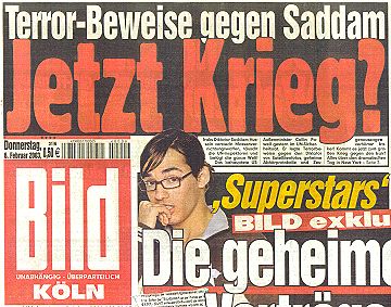 | 'Bild' - Titelseite vom 6.2.2003 "Terror-Beweise gegen Saddam"