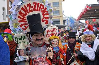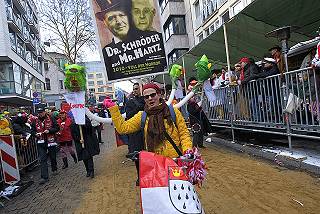 | Köln, 15.2.2010 (2) - "Vom Klüngel jebütz" - G8-Pappnasen beim Rosenmontagszug (Fotos: hs) |