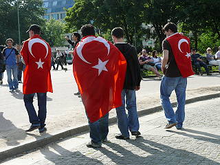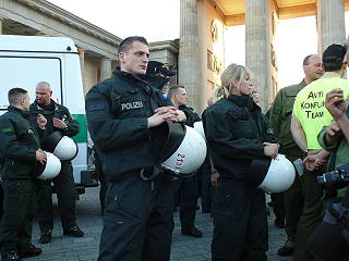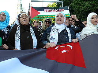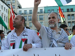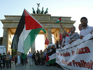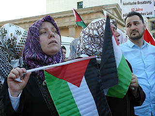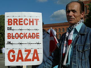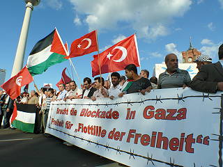 | Berlin, 4.6.2010 - Protest gegen den mörderischen Überfall israelischen Militärs auf die Schiffe des Gaza-Hilfskonvois und gegen die Gaza-Blockade (Fotos: Senne Glanschneider) |
