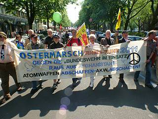 | Düsseldorf, 23.4.2011 (1) - Ostermarsch Rhein/Ruhr - "Gegen die Bundeswehr im Einsatz - Raus aus Afghanistan! Atomwaffen abschaffen - AKW abschalten" |