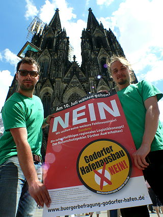 ![]() 1 Protest des BUND gegen den Hafenausbau - vor dem Kölner Dom |