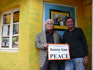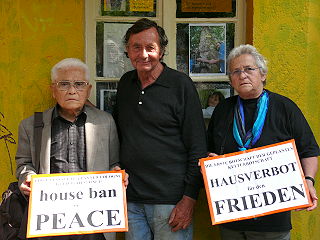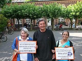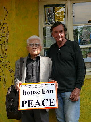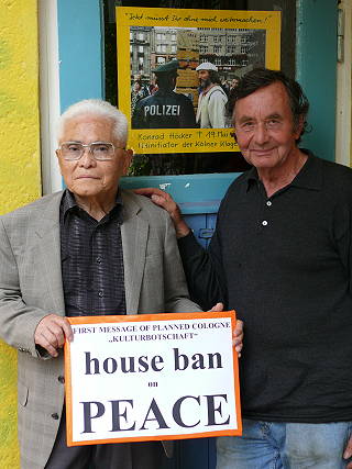 ![]() 1 Kazuo Soda und Walter Herrmann (beide Träger des Aachener Friedenspreises) - "Erste Botschaft der geplanten Kölner 'Kulturbotschaft': House Ban on Peace - Hausverbot für den Frieden" |