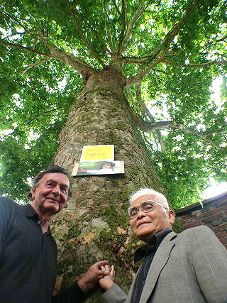 ![]() 13 Walter Herrmann und Kazuo Soda an der vom geplanten Bau der so genannten 'Kulturbotschaft' bedrohten Platane |