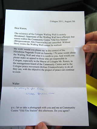 ![]() 12 Kazuo Soda und Walter Herrmann - "Erste Botschaft der geplanten Kölner 'Kulturbotschaft': House Ban on Peace - Hausverbot für den Frieden" |