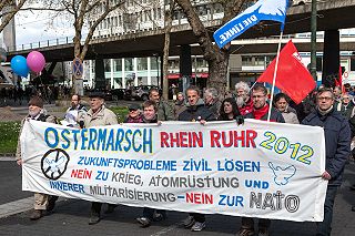 | Düsseldorf, 7.4.2012 (2) - "Nein zu Krieg, Atomrüstung und innerer Militarisierung – nein zur NATO" - Ostermarsch Rhein/Ruhr (Fotos: Karl-Reiner Engels) |