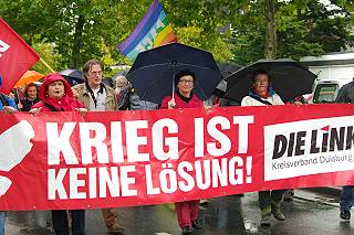 | Kalkar, 3.10.2012 - "Nato plant Krieg von deutschem Boden" - Demonstration gegen die NATO-Kommandozentrale in Kalkar (Fotos: Gisela Blomberg) |