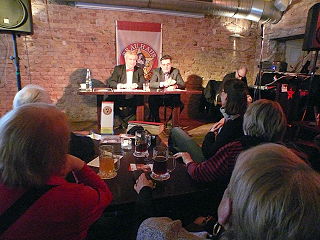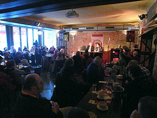 ![]() 9 Dr. Seltsam mit einem Konterplakat zur Konteraufklärungsveranstaltung "Rosa&Karl" |