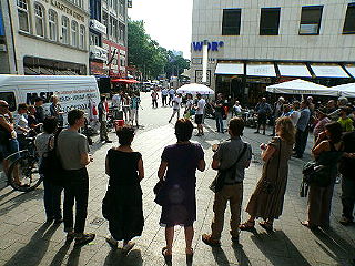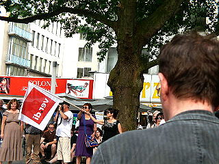 ![]() 1 ver.di-Protest gegen die ERT-Schließung vor dem Funkhaus des wdr an der Rechtschule / Wallraffplatz |