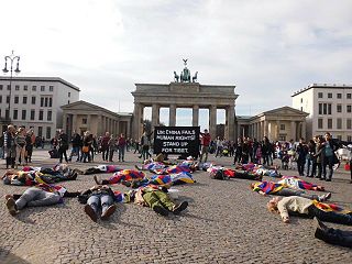 Berlin, 26.10.2013 - Aktion der Tibet-Jugend der "Tibet Initiative Deutschland" gegen die Wahl Chinas in den UN-Menschenrechtsrat