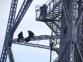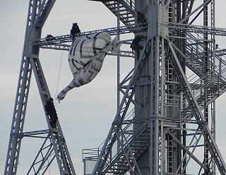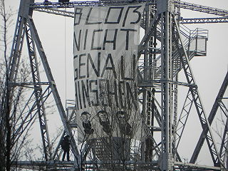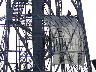 ![]() 1 Kletteraktion am Funkturm (Pressefoto von "Grüne Woche demaskieren!") |