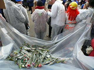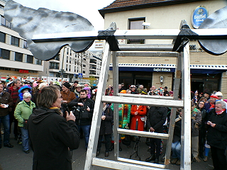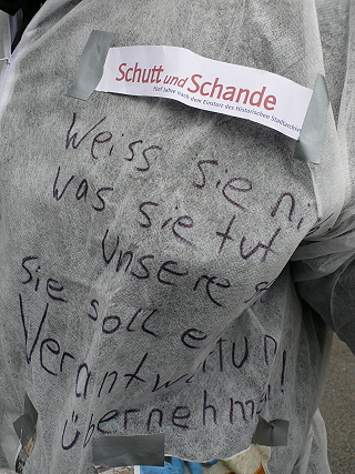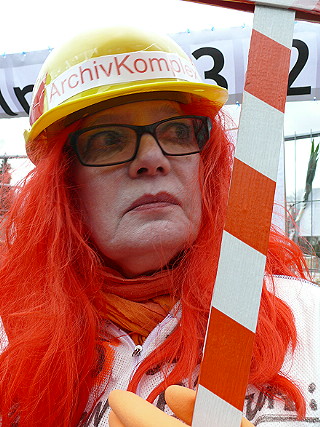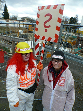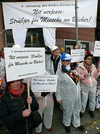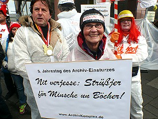 | Köln, 3.3.2014 - Rosenmontag: "Nit verjesse: Strüßjer für Minsche un Böcher!" und "Schutt und Schande" zum 5. Jahrestag des Archiveinsturzes |