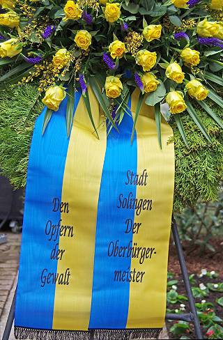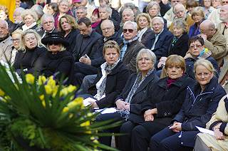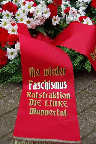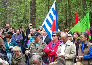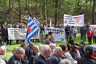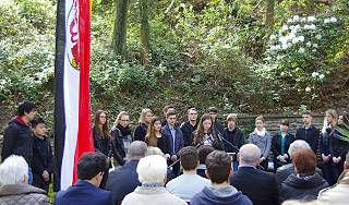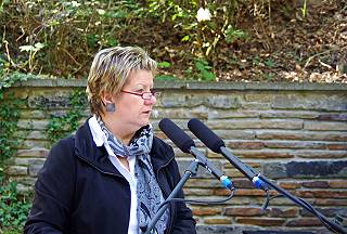 | Wenzelnbergschlucht, 6.4.2014 - Gedenkfeier für die am 13. April 1945 in der Wenzelnbergschlucht bei Langenfeld durch die Gestapo ermordeten 71 Häftlinge (Fotos: Gisela Blomberg) |
