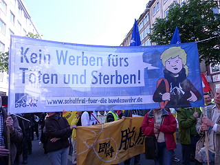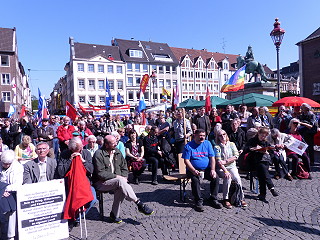 | Düsseldorf, 19.4.2014 (3) - "NATO- und EU-Kriege stoppen, Atomkraft/waffen abschaffen - Für eine zivile EU!" - Ostermarsch Rhein-Ruhr (Fotos: Klaus Franke) |