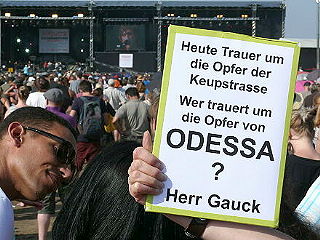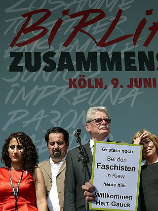 ![]() 1 "Von der Amtseinführung des ukrainischen Präsidenten vor zwei Tagen kommend tritt Bundespräsident Joachim Gauck am 9.6.2014 in Köln bei der Großveranstaltung „birlikte – Zusammenstehen“ auf |