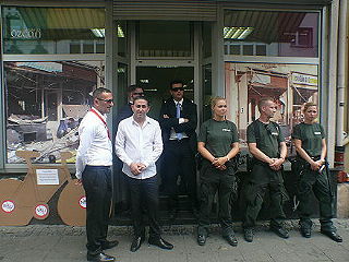 ![]() 12 Friseursalon in der Keupstraße, vor dem am 9.6.2004 die auf einem Fahrrad angebrachte Nagelbombe explodierte – links die Betreiber des Friseursalons |