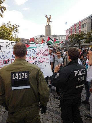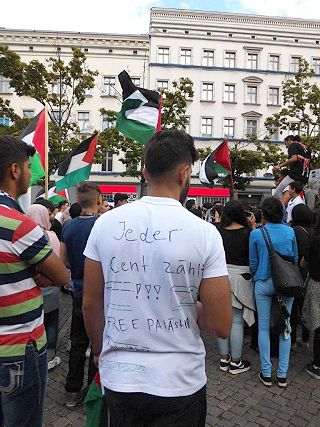 | Berlin, 14.7.2014 - Protest "Stoppt die israelische Aggression! Schluss mit der Bombardierung und Abriegelung Gazas!" |