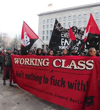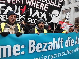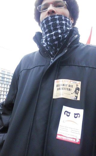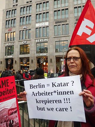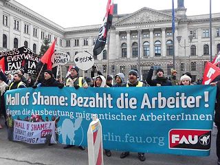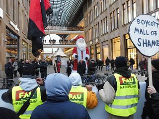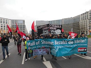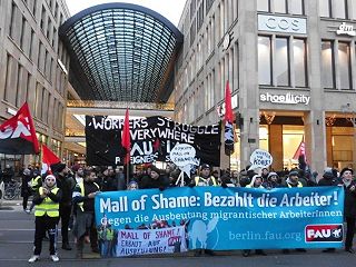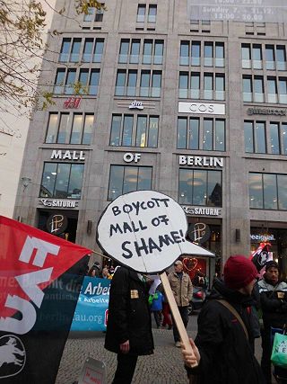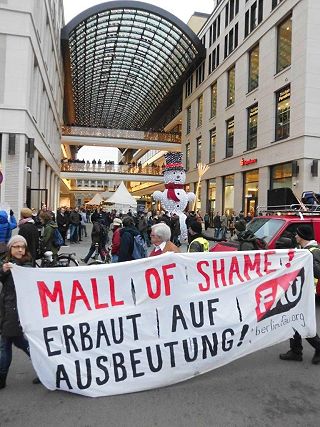 | Berlin, 6.12.2014 - Protest am Einkaufszentrum "Mall of Berlin" - "Mall of Shame: Bezahlt die Arbeiter!" |