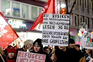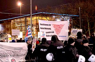 | Düsseldorf, 2.2.2015 - Aufmarsch von "Düsseldorf gegen die Islamisierung des Abendlandes" (Dügida) und der Protest dagegen (Fotos: Gisela Blomberg) |