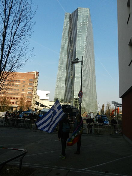 Dort wo die Viehwaggons in die KZs starteten - Proteste anlässlich der Einweihung des neuen EZB-Hauptquartiers |