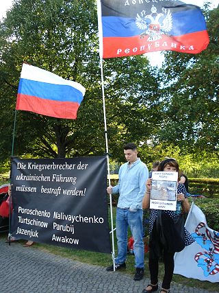 | Berlin, 24.8.2015 - "Wir pfeifen auf Poroschenko" - Protest anläßlich des Besuchs des Präsidenten der Ukraine bei Bundeskanzelerin Merkel (Fotos: Alant Jost) |