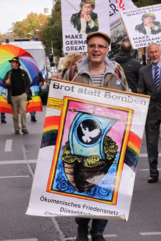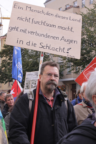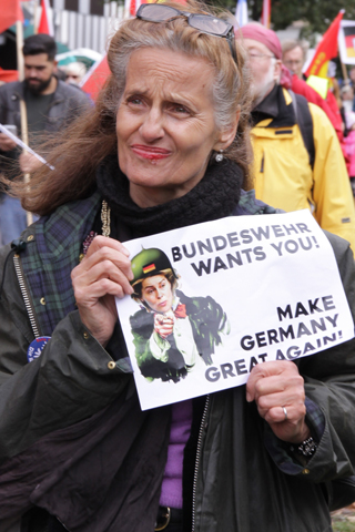 | Berlin, 8.10.2016 (3), Friedensdemonstration "Die Waffen nieder! Kooperation statt NATO-Konfrontation, Abrüstung statt Sozialabbau" (Fotos: Georg Maria Vormschlag) |