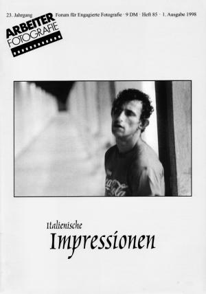 FORUM Bilddiskussion MEDIEN, PEST UND AUFKLÄRUNG Berlusconi in Fotos von Hans-Peter Jost, Zürich AGENT PROVOKATEURE Oliviero Toscani - im Auftrag eines italienischen Bekleidungsunternehmens GENTE DI FOTOGRAFIA LEUTE DER FOTOGRAFIE Eine italienische Fotozeitschrift LABYRINTHE Vincenzo Mirisola Reflexionen über ein psychiatrisches Krankenhaus in Palermo (siehe auch Ausstellung in der Galerie) ZUR HÖLLE UND ZURÜCK Cristina Núñez Ein Portrait von Überlebenden des Konzentrationslagers Auschwitz SCANNO Giuseppe Bucci - auf den Spuren Henri Cartier-Bressons in einem Abruzzendorf SARDINIEN Siegfried Bresler - 70 Jahre nach August Sander MUSSOLINI Betrachtungen von Peter Mönnikes BILDDOKUMENTE - DOKUMENTE DER ZEIT Manfred Krause zum 75. Geburtstag des Berliner Fotografen und Bildjournalisten Gerhard Kiesling LA BUSSOLA - DER KOMPASS Eine Fotografengruppe und die italienische Nachkriegsfotografie MAYLIGHT Ein neues europäisches Fotografie-Festival in Bologna STUDIO MARANGONI Ein Fotografie- und Kulturzentrum in Florenz GIORGIO SOMMER Fotograf in Italien 1857 bis 1891 Reise zwischen Mythos und Realität DIE EDITION ART& Ein italienischer Fotobuchverlag VERGLEICHENDE KONZEPTIONEN Sander, Blossfeldt, Renger-Patzsch, Becher BUCHKRITIK 'I, Will McBride'' Liliane Schafiyha - Fotopädagogik und Fototheorie NACHRUF Angela Neuke NOTIZEN IMPRESSUM |